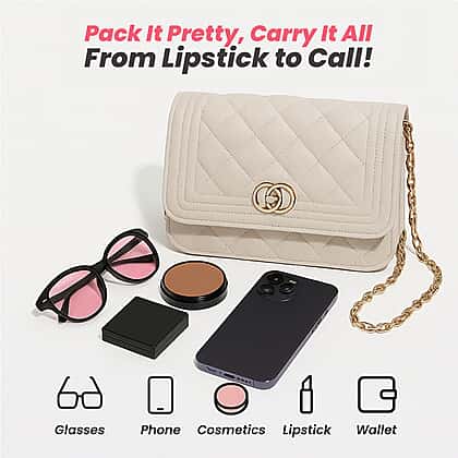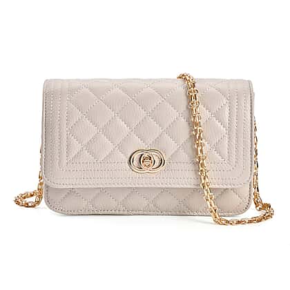 Genuine Leather Couture Quilted Diamond Pattern Shoulder Bag with Panther Link Strap - Off-White