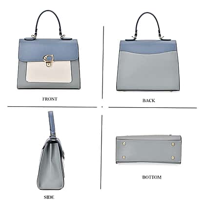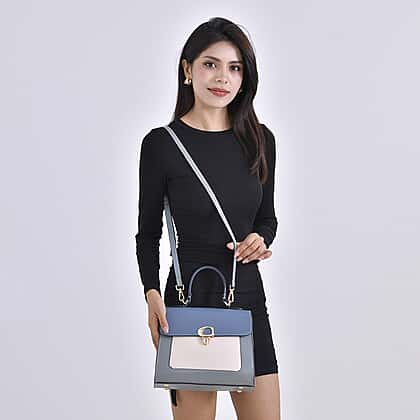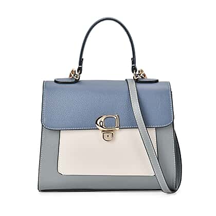 Genuine Leather Patterned Crossbody Bag (Size 27x11x22 cm) - Light Blue & White