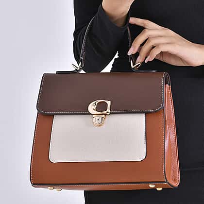 Genuine Leather Patterned Crossbody Bag (Size 27x11x22 cm) - Tan & White