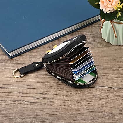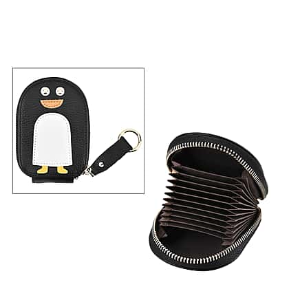 Genuine Leather Penguin Card Wallet with Keychain & RFID Technology - Black