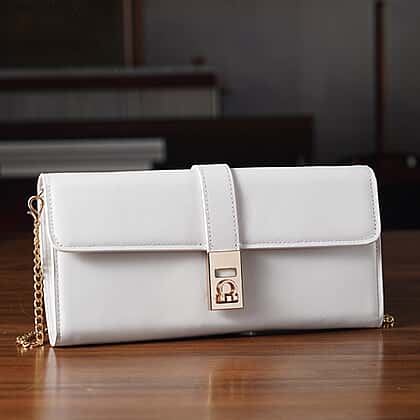 Genuine Leather RFID Blocking Travel Clutch with Chain Strap - White