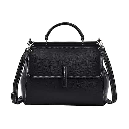 100% Genuine Leather Convertible Bag with Detachable Long Strap (Size 24x12x20 cm) - Black