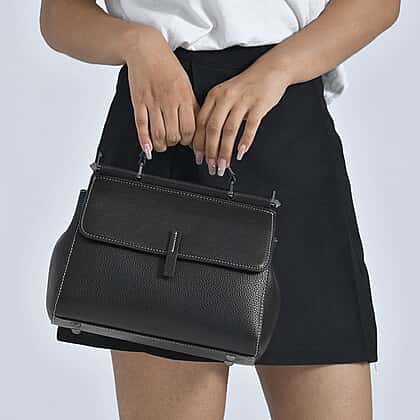 100% Genuine Leather Convertible Bag with Detachable Long Strap - Black
