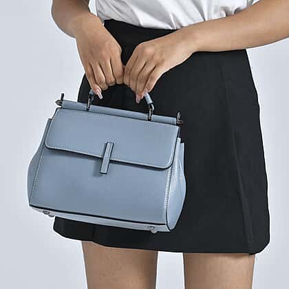 100% Genuine Leather Convertible Bag with Detachable Long Strap - Light Blue