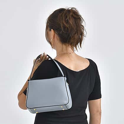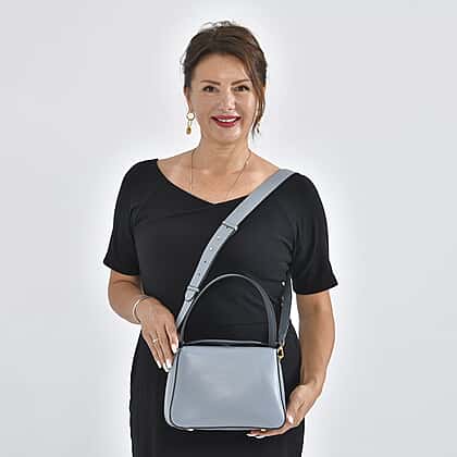Looking for a versatile leather bag that packs in as much space as it is loaded on style? This blue and gray crossbody bag offers you sizable storage space in its zippered main compartment. The crossbody bag has a size of 25x10x18 cm and comes with multiple pockets for extra storage. The fixed handle drop and the detachable strap offer a variety of styling options.
