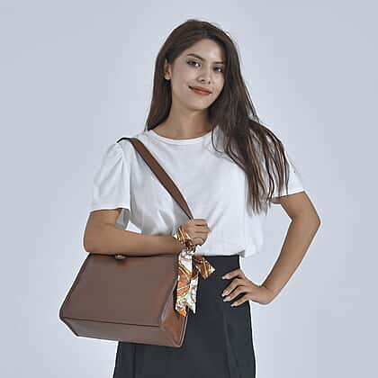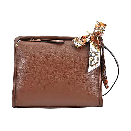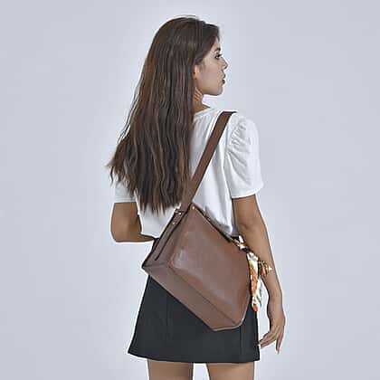 100% Genuine Leather Crossbody Bag with Detachable Long Strap - Brown