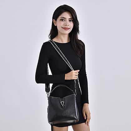 Upgrade your style with this genuine leather crossbody bag, blending functionality with refined elegance. Featuring a compact yet spacious design (L24 x W10.5 x H21cm), it offers a well-organised interior with one zipped and one slip pocket to store essentials securely. The exterior includes a zip pocket and a lock closure for added utility and sophistication. Designed for versatility, this bag has two interchangeable 120cm shoulder straps, one leather and one nylon, allowing you to style it your way. With a comfortable hand drop of 12cm, this bag is perfect for work, casual outings, or travel.