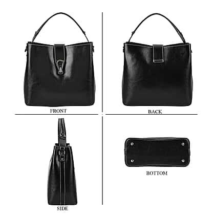 100 % Genuine Leather Solid Crossbody Bag (Size 24x10x21 cm) - Black