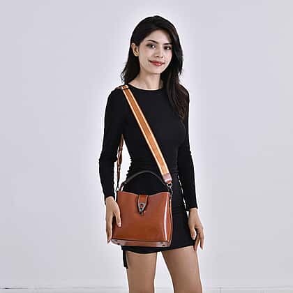 Upgrade your style with this genuine leather crossbody bag, blending functionality with refined elegance. Featuring a compact yet spacious design (L24 x W10.5 x H21cm), it offers a well-organised interior with one zipped and one slip pocket to store essentials securely. The exterior includes a zip pocket and a lock closure for added utility and sophistication. Designed for versatility, this bag has two interchangeable 120cm shoulder straps, one leather and one nylon, allowing you to style it your way. With a comfortable hand drop of 12cm, this bag is perfect for work, casual outings, or travel.