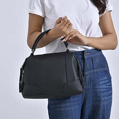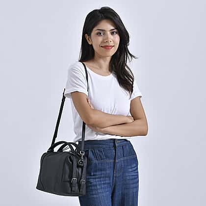Leather Solid Crossbody Bag (Size 29x13x22 cm) - Black & Green