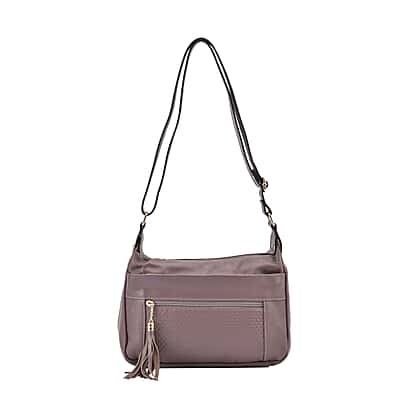 Genuine Leather Solid Crossbody Bag with Shoulder Strap - Purple