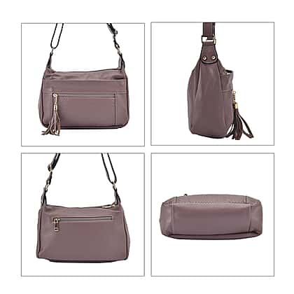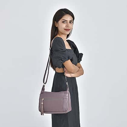 Upgrade your accessories collection with this simple and classy purple crossbody bag. The exterior body is made from genuine leather, whereas the inner lining is of polyester making it durable and long-lasting. This bag features four zipper pockets and one slide pocket to keep your cards, cell phone and other items safe. You can pair it with your formal or casual wardrobe for an amp-up look.