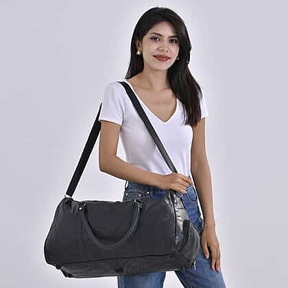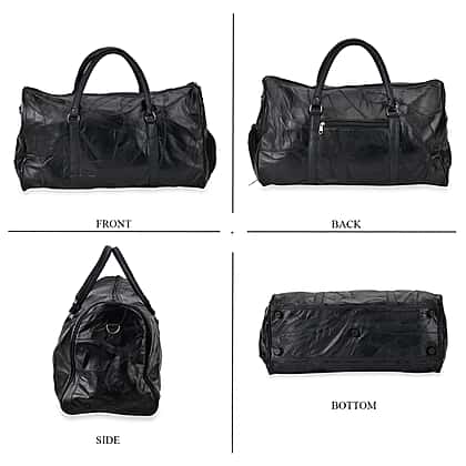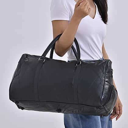 Travel in style with this 100% genuine leather duffle bag, the perfect companion for your weekend getaways or business trips. It is designed with spacious interiors and offers ample room for all your essentials while remaining compact enough for easy handling. Crafted with fine attention to detail, the rich leather gives it a timeless, classic look. The sturdy metal zippers ensure long-lasting performance, and the comfortable handles add convenience. Whether you're headed on an adventure or simply to the gym, this bag is versatile enough for any occasion.