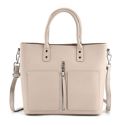 If you are looking for a bag that feels timeless, then this beige tote bag makes for a great choice. Made with genuine leather, this bag has a smooth, lustrous finish. It boasts of a spacious interior which is lined with durable polyester. It features two internal zip pockets and slip pockets to keep your things from keys to wallet in place. The best part about this bag is that it's very practical. It features a frontal zip pocket that can provide you quick access. It comes with a top sturdy handle and a detachable crossbody strap to seamlessly transition from work to leisure look.