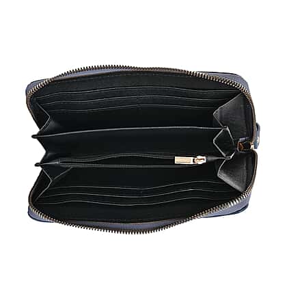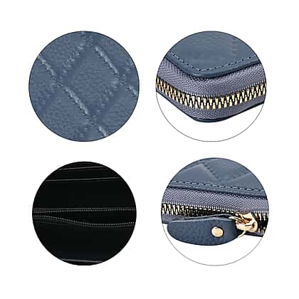 Genuine Leather Wallet with Embossed Rhombus Pattern & RFID Blocking - Blue