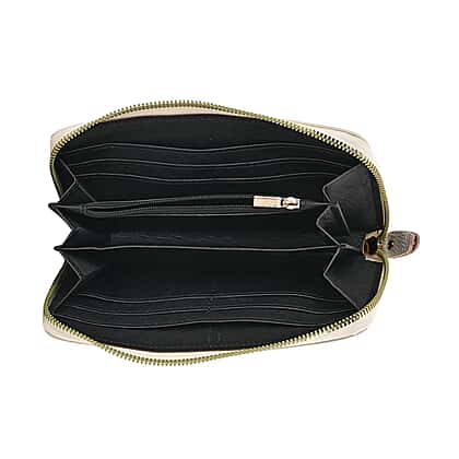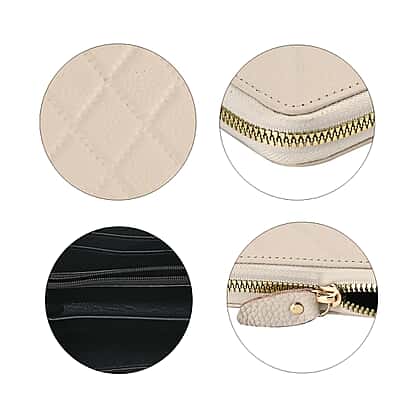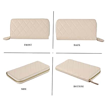 Genuine Leather Wallet with Embossed Rhombus Pattern & RFID Blocking - Cream