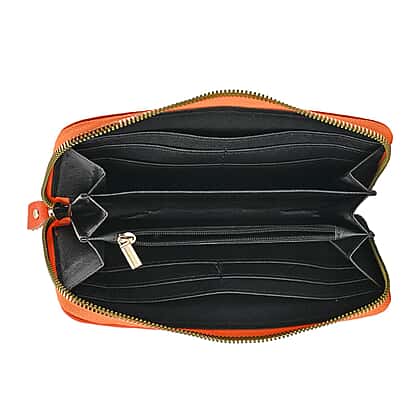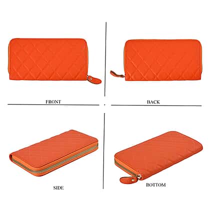 Genuine Leather Wallet with Embossed Rhombus Pattern - RFID Blocking - Orange