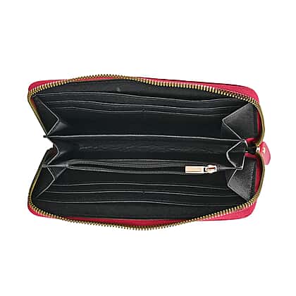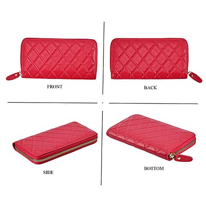 Genuine Leather Wallet with Embossed Rhombus Pattern & RFID Blocking - Pink