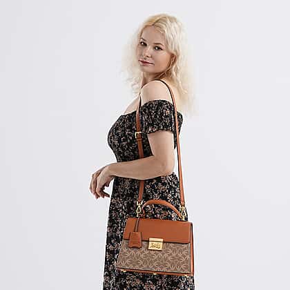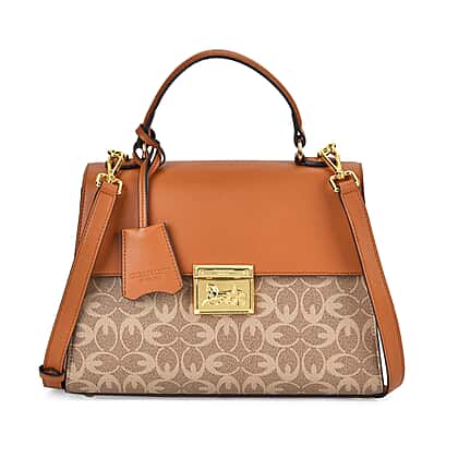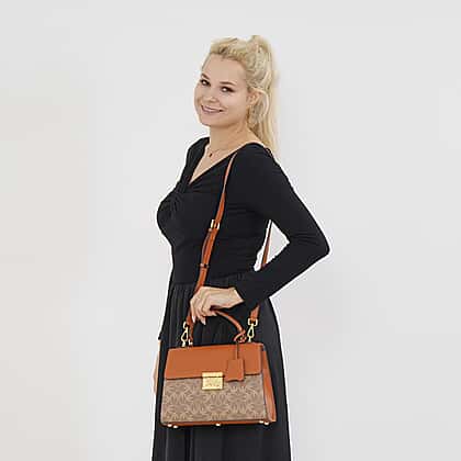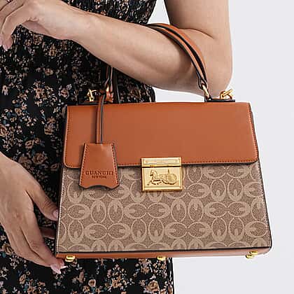 GUANCHI Oval Pattern Crossbody Bag with Handle Drop - Brown & Beige