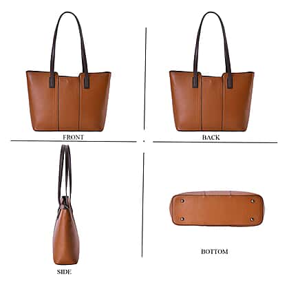Hong Kong Closeout - 100% Genuine Leather Solid Tote Bag - Tan