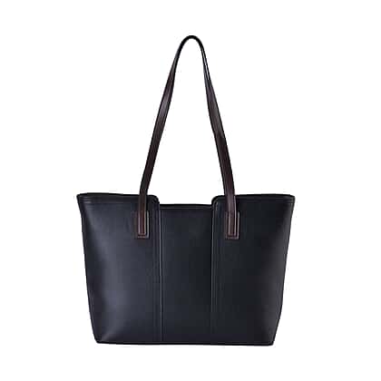 Hong Kong Closeout - 100% Genuine Leather Solid Tote Bag - Black