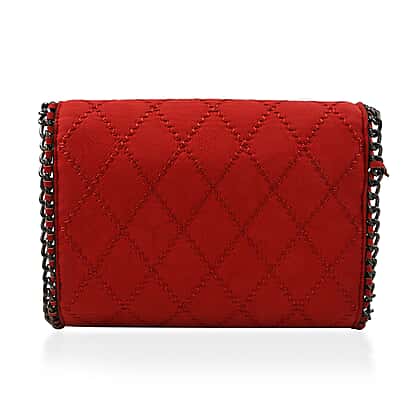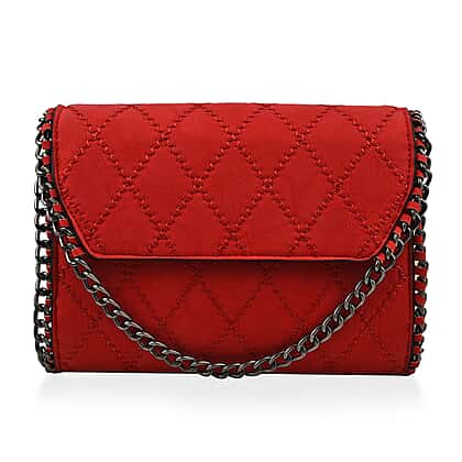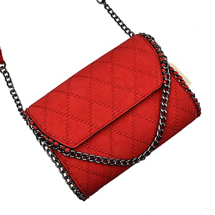Hong Kong Closeout Deal - Chain Trim Crossbody Bag with Shoulder Strap - Red