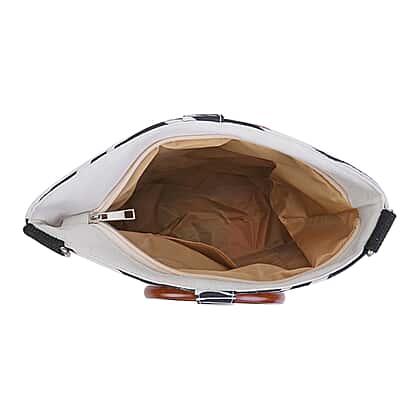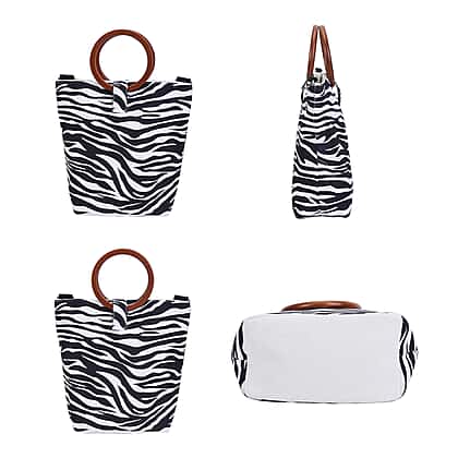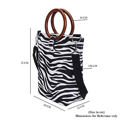 Impressive Zebra Head Pattern Tote Bag in Unique Wooden Handle Drops with Zipper Closure (Size:32x12x29Cm) - Black and White