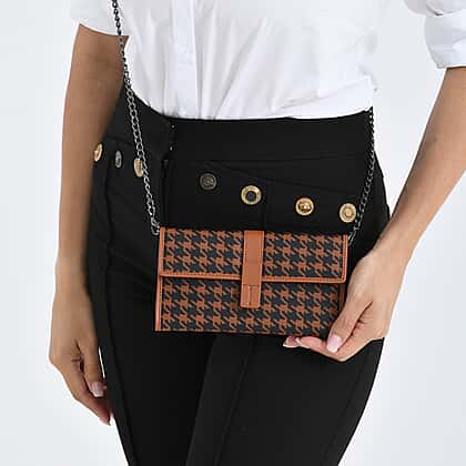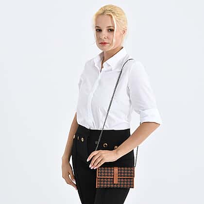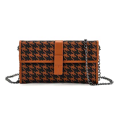 La Marey Genuine Leather Checkered Pattern RFID Crossbody Wallet - Brown