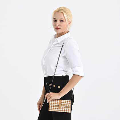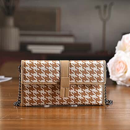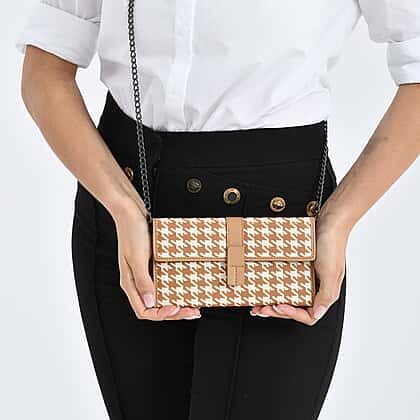 La Marey Genuine Leather Checkered Pattern RFID Crossbody Wallet - Dark Beige