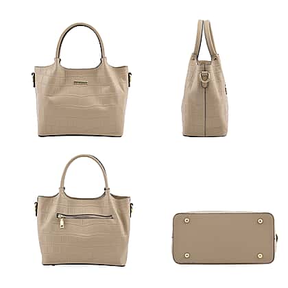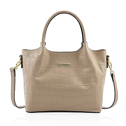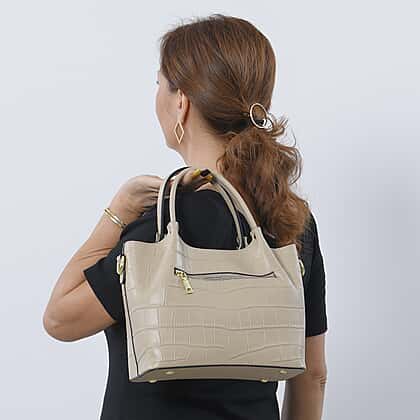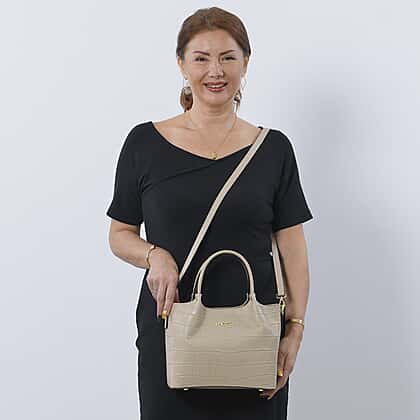 LA MAREY 100% Genuine Leather Croc Embossed Convertible Bag with Detachable Strap - Beige