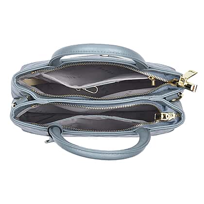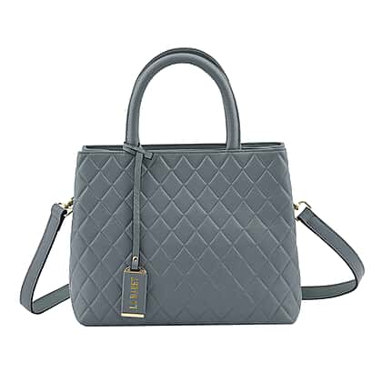 LA MAREY Genuine Leather Diamond Pattern Convertible Bag with Shoulder Strap - Blue