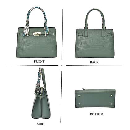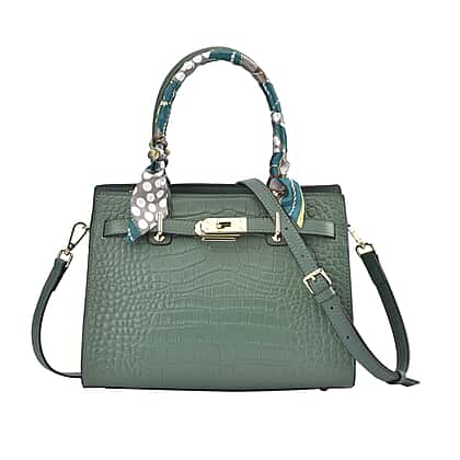 La Marey Genuine Leather Solid Crossbody Bag with Detachable Strap - Green