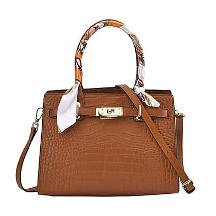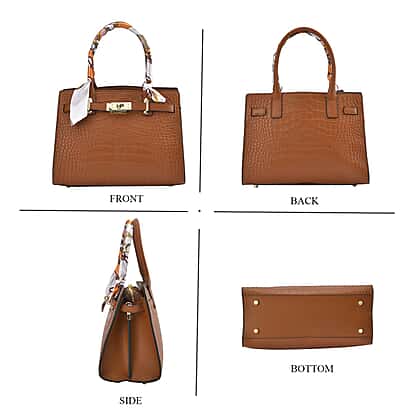 La Marey Genuine Leather Solid Crossbody Bag with Detachable Strap - Tan