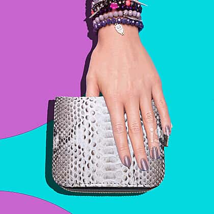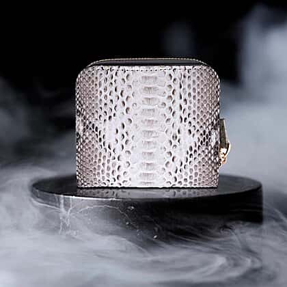 La Marey 100% Genuine Python Leather Snake Print Wallet with Zipper Closure - Grey