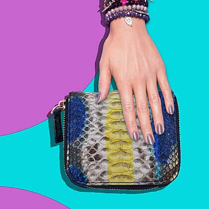 - STRIKING COLOUR: The striking colour combination on python leather creates a vibrant appearance
