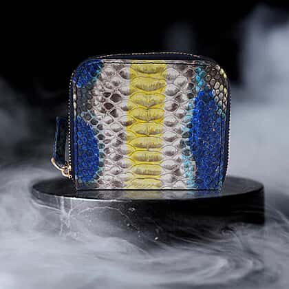 LA MAREY 100% Genuine Python Leather Wallet with Zipper Closure (Size 11x10x2cm) - Yellow - Multi