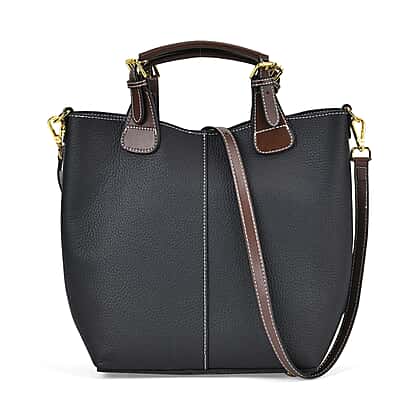 Genuine Leather Convertible Bag with Detachable Long Strap and Handle Drop
