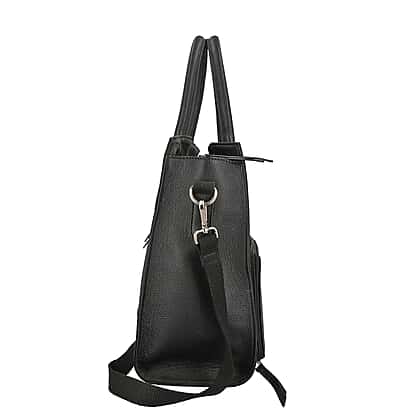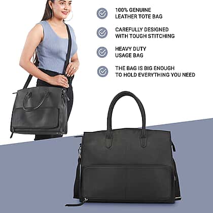 Leather Tote Bag with Detachable Shoulder Strap and Zipper Closure (Size 38x30x13Cm) - Black