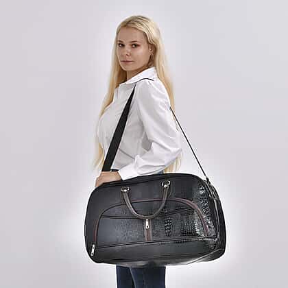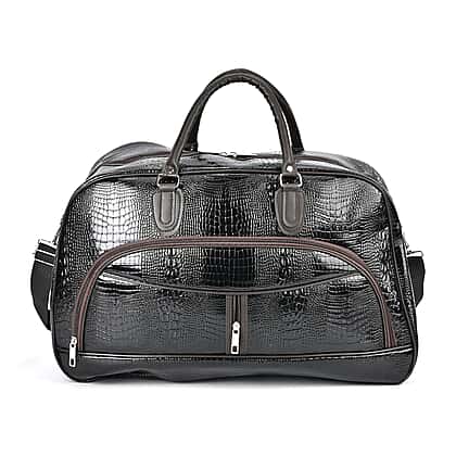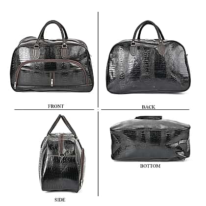 Leatherette Crocodile Pattern Travel Bag with Handle Drop