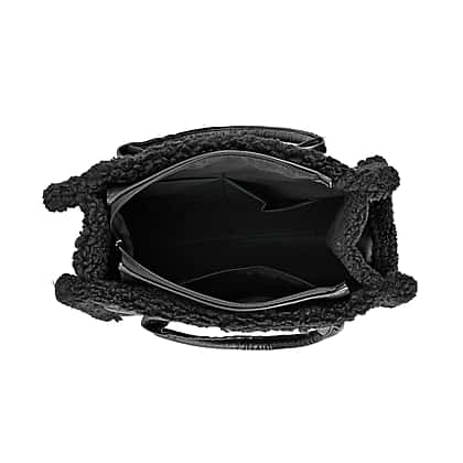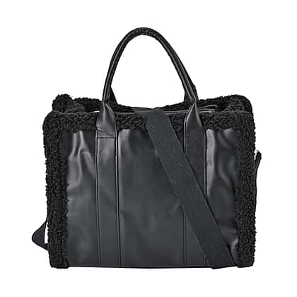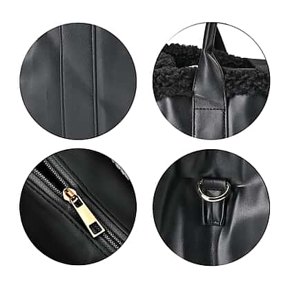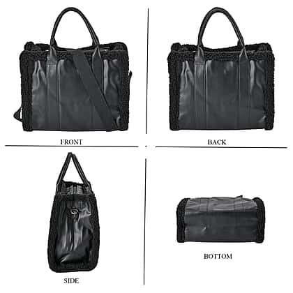 Leatherette Crossbody Bag with Exterior Zipped Pocket & Shoulder Strap - Black