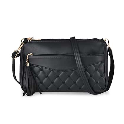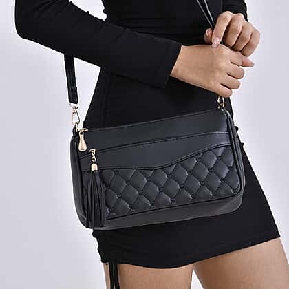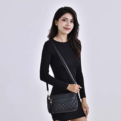 Leatherette Quilted Pattern Crossbody Bag with Adjustable Long Strap