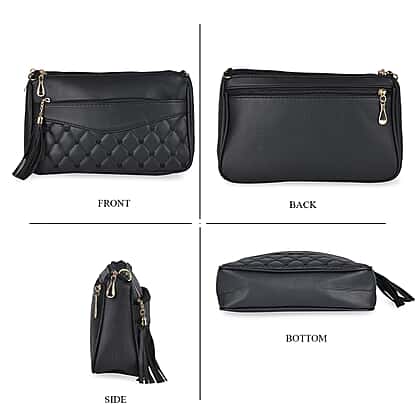 This pu quilted pattern crossbody bag is a stylish and practical addition to your accessory collection. Crafted from high-quality PU, the exterior features a stylish quilted pattern, giving it a luxurious look while ensuring durability. The polyester-lined interior is thoughtfully designed with six card slots, making it easy to stay organised. The three exterior zipped pockets offer additional space for your essentials, allowing quick access on the go. With a long 63-inch crossbody strap, this bag offers comfort and versatility, perfect for daily wear or special occasions.