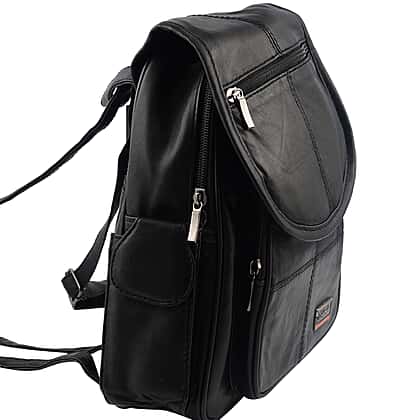 Le Monde Genuine Leather Backpack with Front Flap 28x24x9cm (HxWxD) - Black