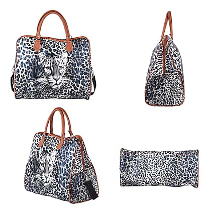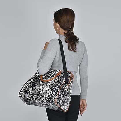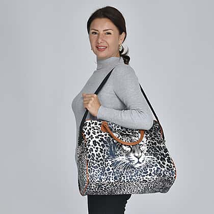 Leopard Pattern Tote Bag for Women with Handle Drop and Shoulder Strap - Black and White