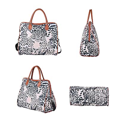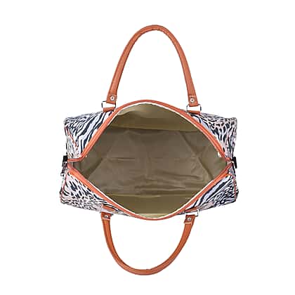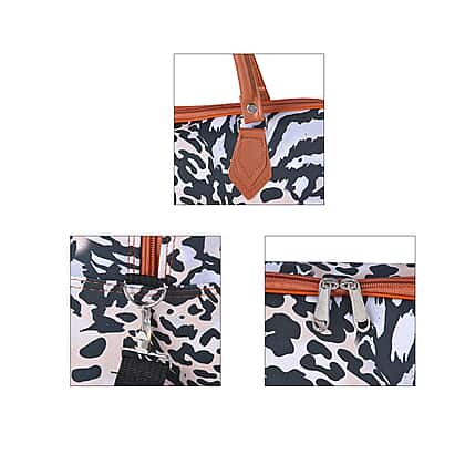 Leopard Pattern Tote Bag with Handle Drop and Shoulder Strap - Khaki