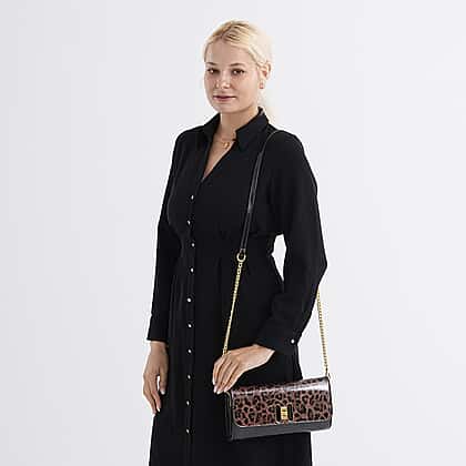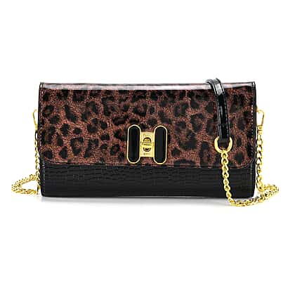 Leopard Pattern Two-Tone Wallet Crossbody Bag with Chain Strap - Brown