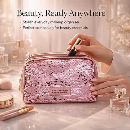 Keeping beauty essentials organised becomes more enjoyable with the Marc Jacobs Sparkling Female Sequin Cosmetic Pouch. Designed with eye-catching pink sequins, this stylish pouch adds a playful yet glamorous touch to everyday routines. Measuring 21.5 x 14 cm with a 6.5 cm base, it offers ample space for makeup, skincare or small accessories while remaining compact enough for handbags or travel cases. The smooth zipper closure keeps items secure and easy to access. Crafted as a genuine Marc Jacobs accessory, the pouch blends fashion with practicality, making it a charming companion for storing your favourite beauty products wherever you go.
