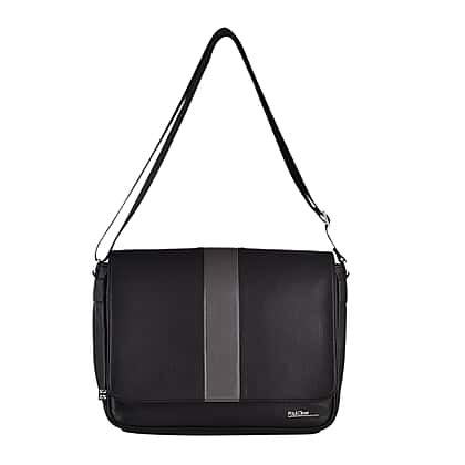 Mens Messenger Bag with Graphite Band and Magnetic Clasp Lock (Size 31x25x10 Cm) - Black