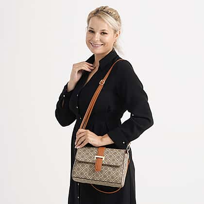 Monogram Pattern Crossbody Bag - Beige