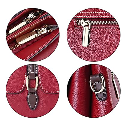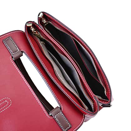 New Fall Collection- Genuine Leather Crossbody Bag with Shoulder Strap - Red